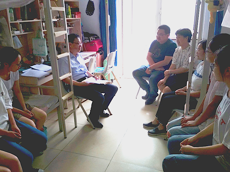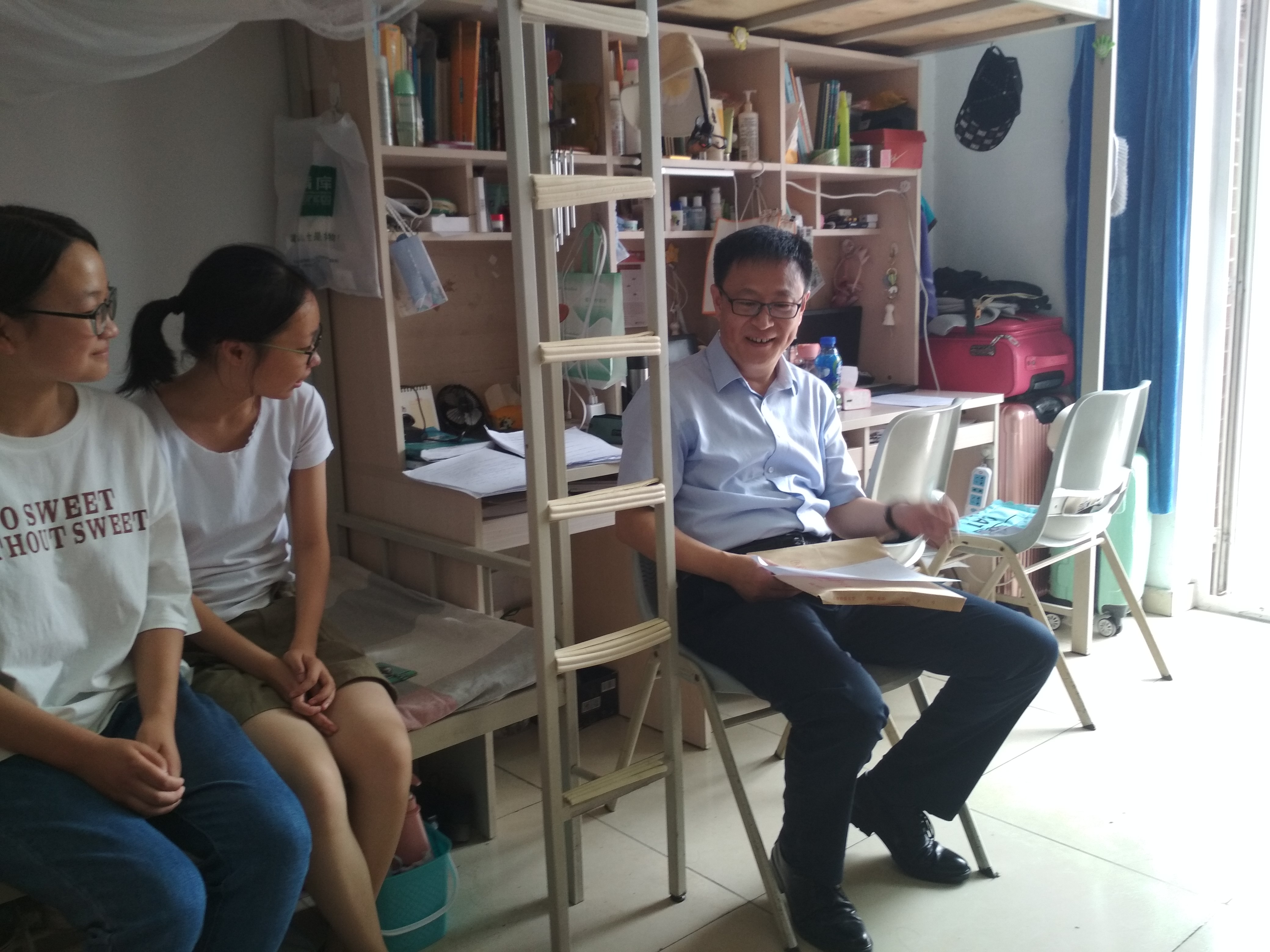 中午,夏书记在艺术学院和海环学院相关负责人的陪同下走访了对接的学生宿舍。一进宿舍,夏书记就询问同学们吃没吃饭、考试考得怎么样、宿舍热不热、假期有什么安排...亲切的话语一下子拉近了和同学们的距离。随后,夏书记带头向同学们做了自我介绍,同学们也逐一介绍了个人的学习生活情况。在交流中,夏书记对同学们的生活状态、学习情况和人际交往问题十分关切,他叮嘱同学们要努力学习专业知识提升理论水平,多参与社团活动和社会实践锻炼自身能力,要珍惜大学四年的宝贵时光,要珍惜宿舍兄弟姐妹情,鼓励同学们争创学霸宿舍。