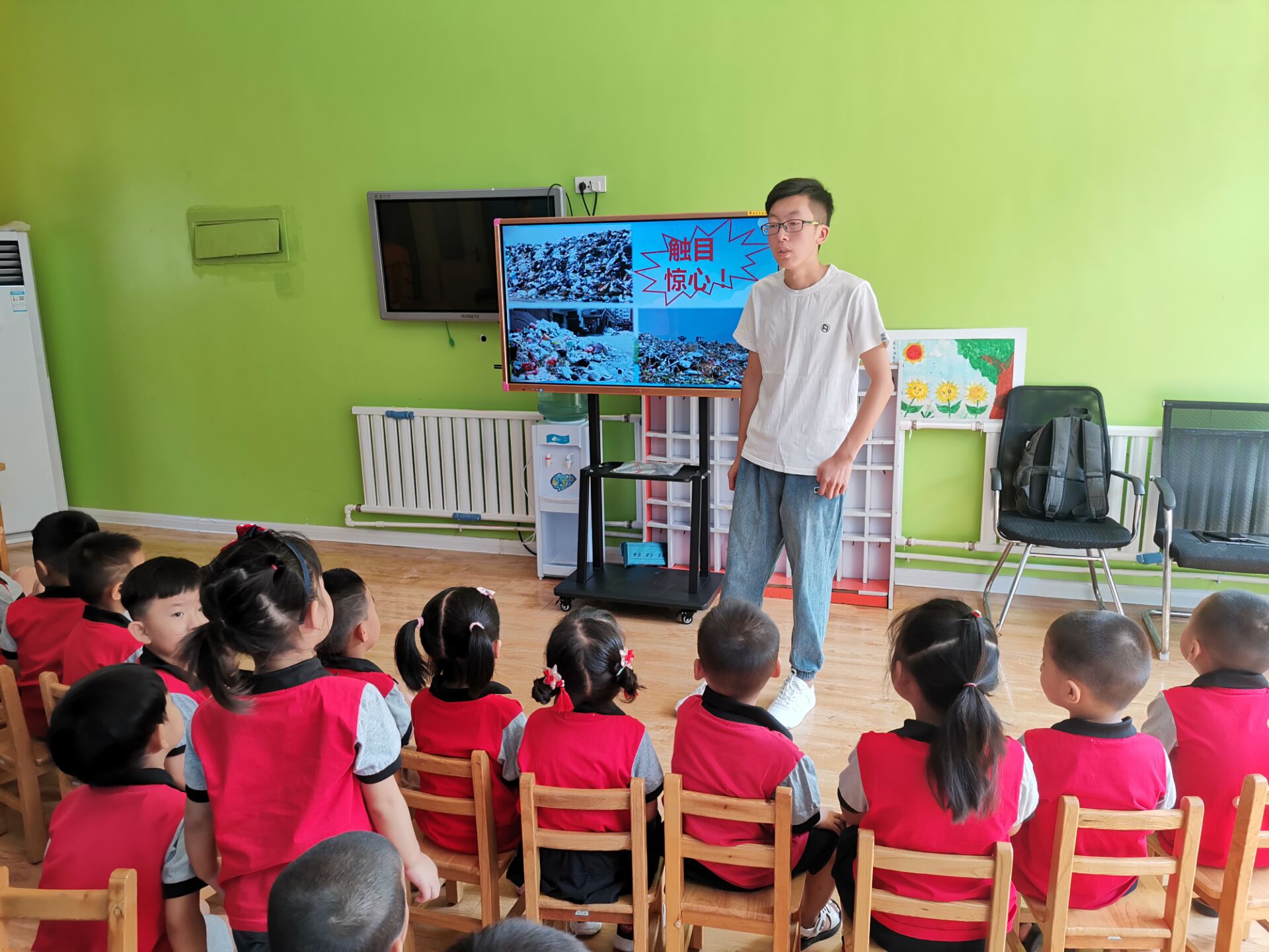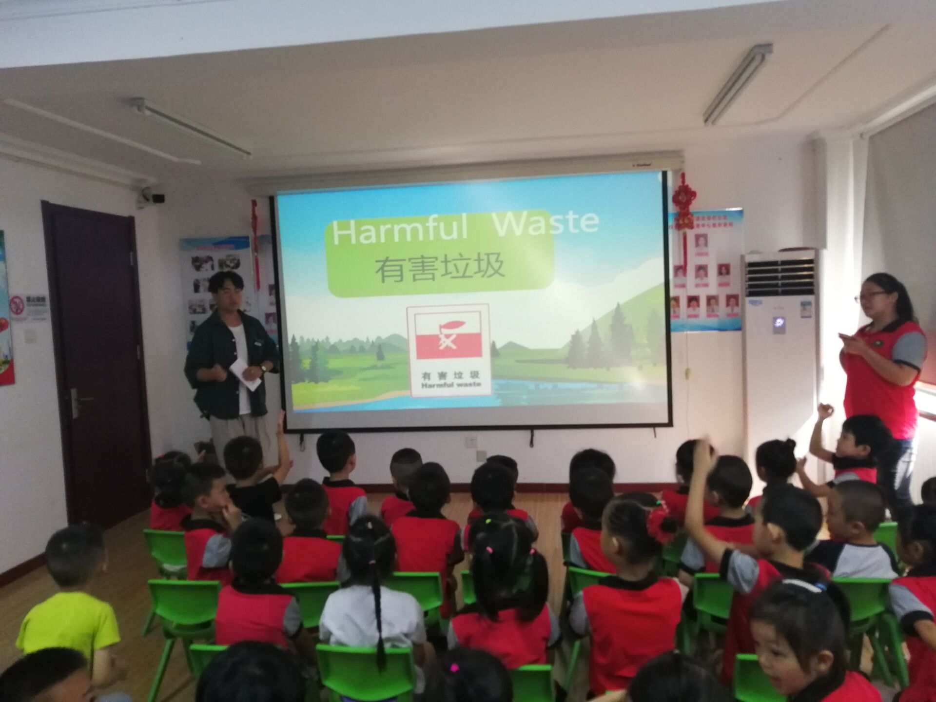 活动中,实践团成员分成三组,利用所学的专业知识,分别为各班小朋友们上了一堂生动的垃圾分类环保课。成员们通过有奖问答、环保创意画和生活垃圾手工制作等寓教于乐的方式和孩子们进行互动交流。通过详细介绍什么是“可回收垃圾”、什么是“有害垃圾”、什么是“其他垃圾”以及如何进行垃圾的分类和投放等环保知识,垃圾分类的环保理念更加深入人心,小朋友们在轻松快乐的气氛中掌握了垃圾分类的知识,实践队成员们也通过备课、授课收获良多。