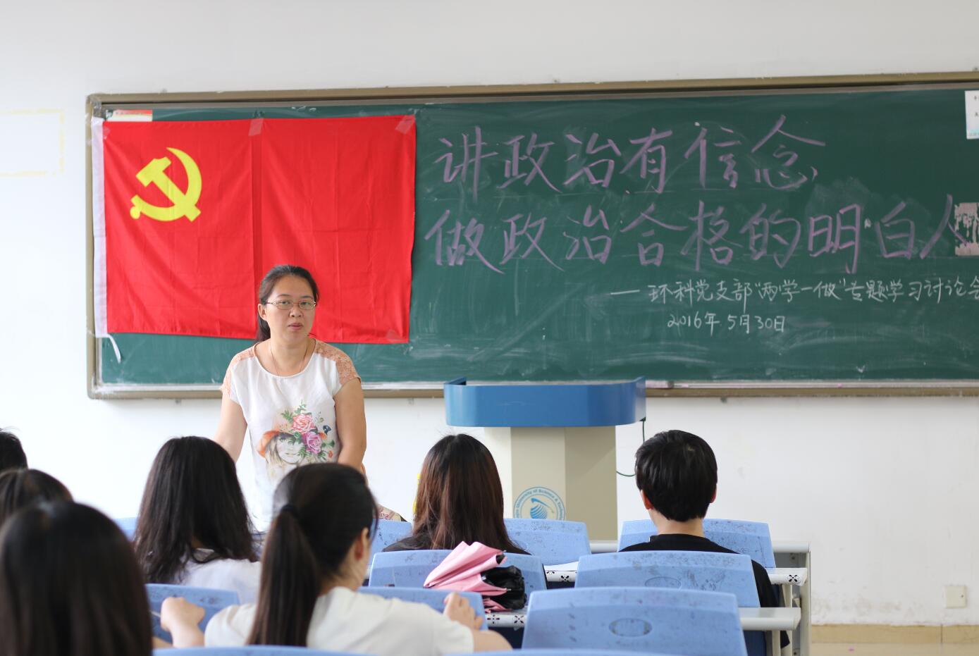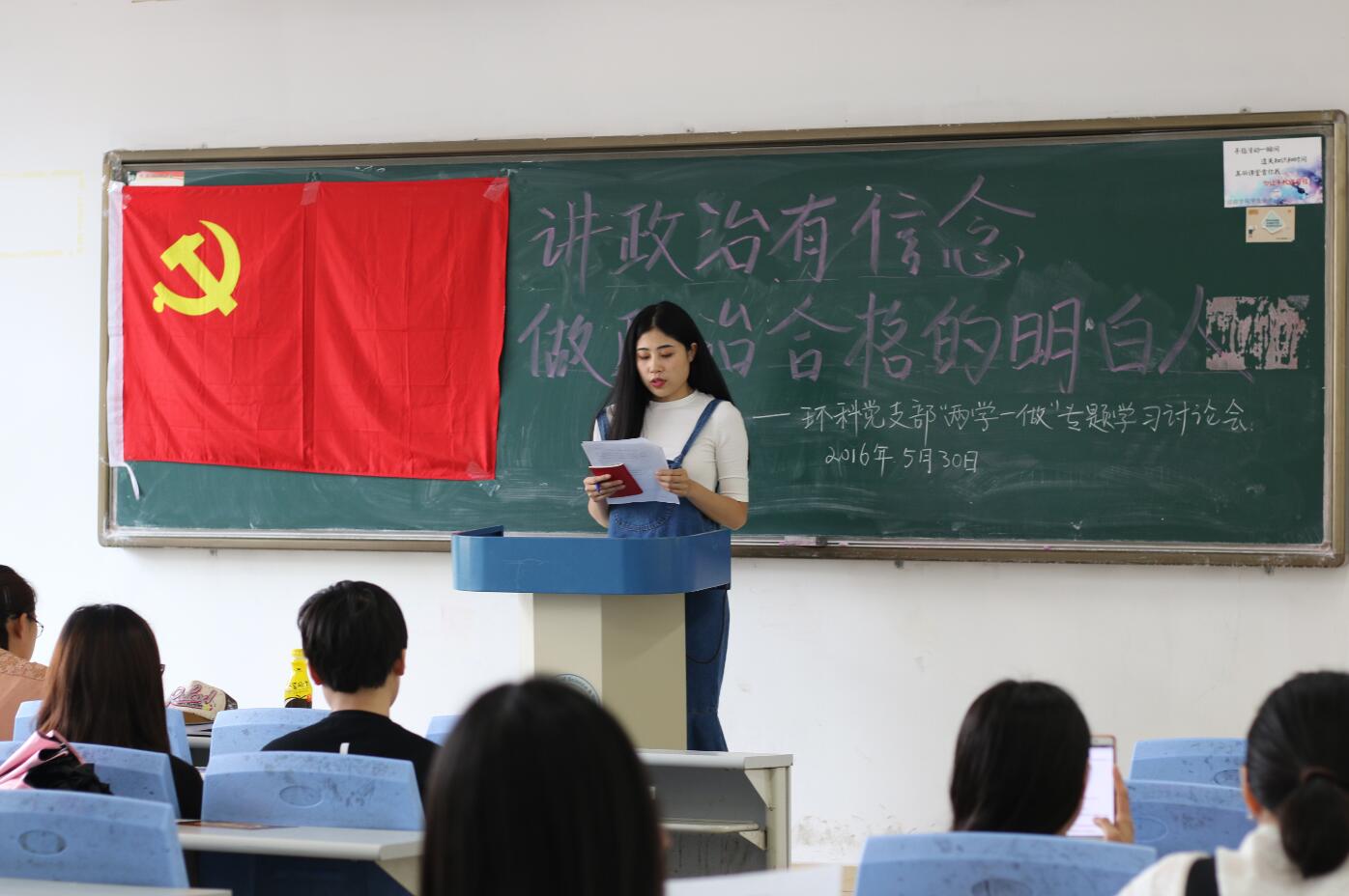 根据学院党委“两学一做”学习教育工作部署会的要求,结合支部专题学习教育实施方案, 5月30日下午,环境科学本科生党支部在5号楼302进行了主题为“讲政治有信念,做政治合格的明白人”的“两学一做”专题学习研讨,支部全体党员参加了会议。会议由支部组织委员牛红梅主持。