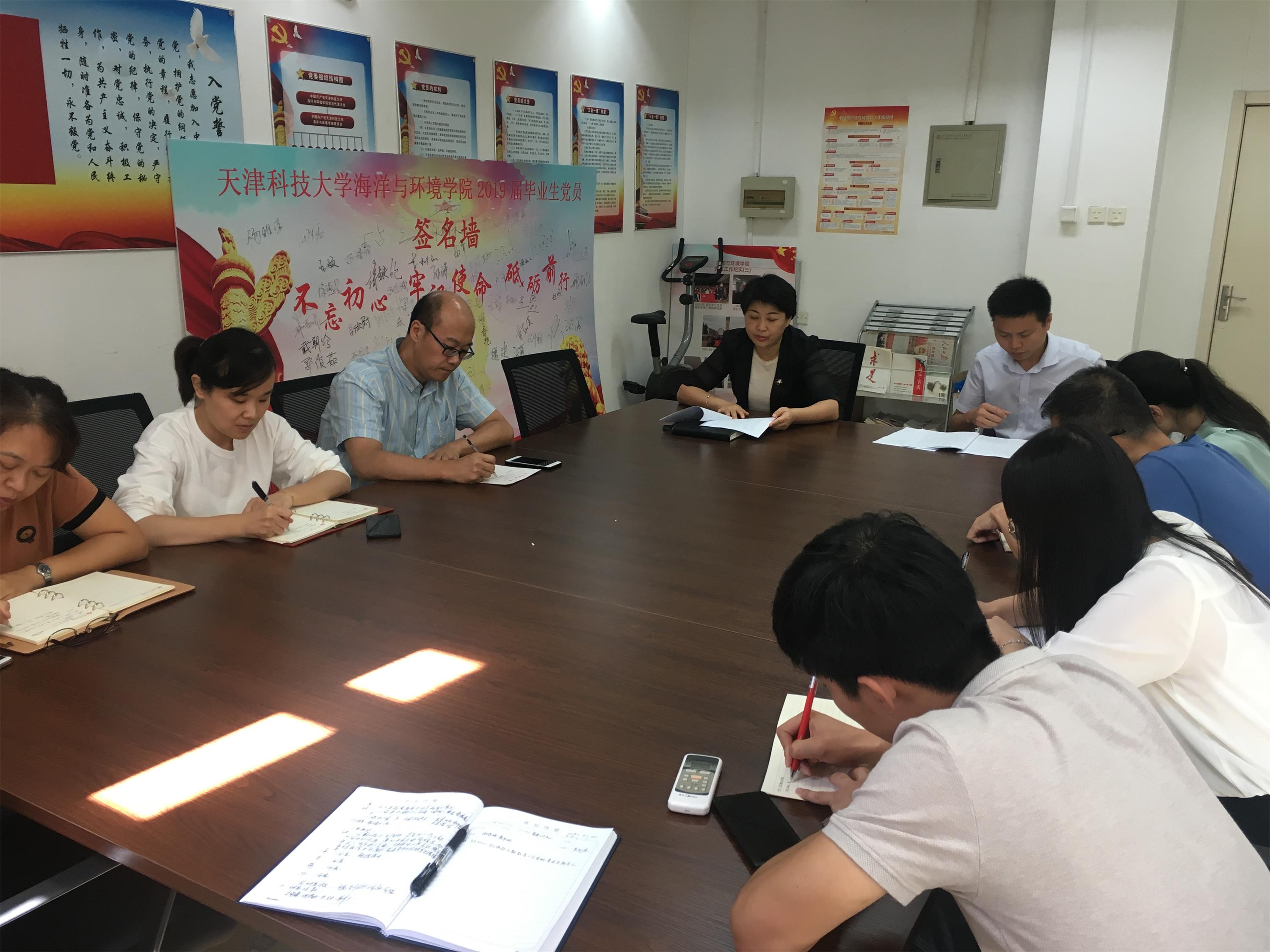 9月18日中午,海洋与环境学院在滨海中校区6号楼112会议室召开了“不忘初心、牢记使命”主题教育部署会。学院党委书记张春艳、专职组织员蒋华朋和各党支部书记出席会议。