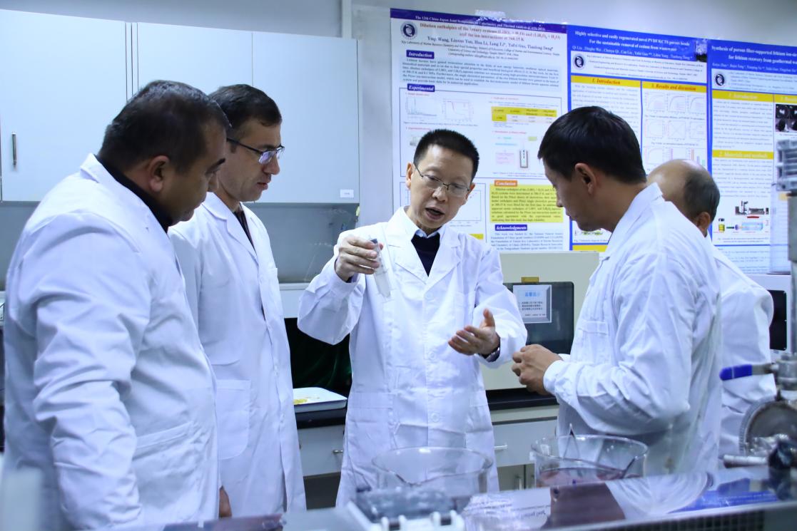 乌方项目负责人塔什干化工学院Murodjon Samadiy教授介绍Areal Sea液体锂矿资源及生产开发条件,院长邓天龙教授详细介绍了Areal Sea卤水绿色高效提锂关键技术和提锂装备研发进展。随后双方对项目合作的详细内容进行了深入交流。