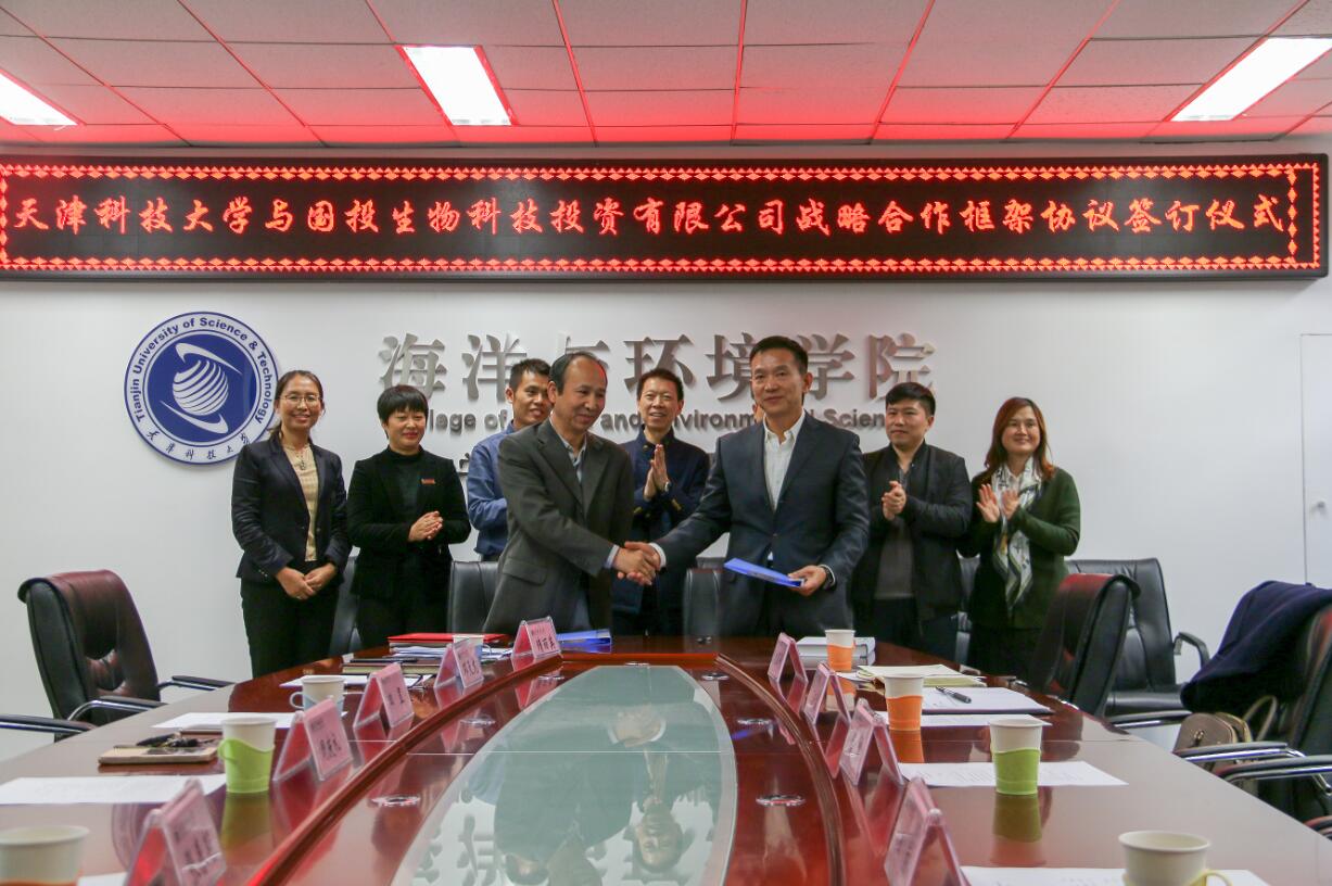 2018年11月6日,天津欧美性爱免费与国投生物科技投资有限公司--国投微藻生物科技中心战略合作框架协议在海洋与环境学院签订,科技处和人力资源处相关领导、海洋与环境学院领导、国投微藻生物科技中心胡强主任及中心管理层负责人出席签字仪式,签字仪式由海洋与环境学院隋丽英副院长主持。