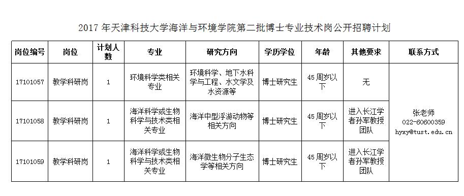 2017年海洋与环境学院第二批博士专业技术岗公开招聘计划