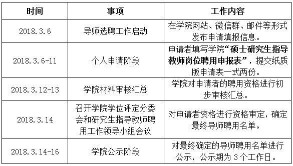 根据学校和学院工作安排,2018年研究生指导教师选聘工作开始启动,现将具体工作通知如下。