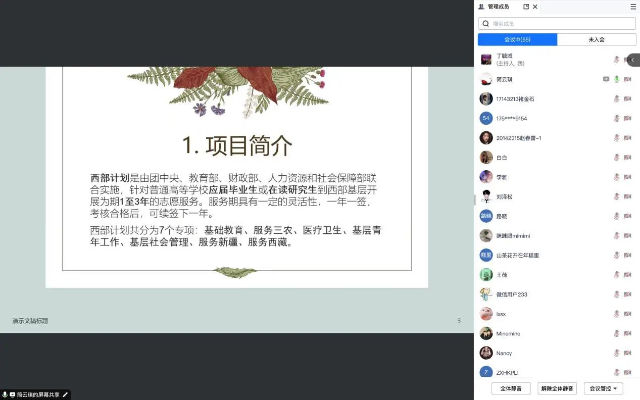 几位主讲人分别讲述了自己在基层工作的点点滴滴。并为同学们解答了对于基层就业的困惑。结合自身经历,深入剖析了基层就业的就业情况与并为大家提出了宝贵的就业建议。他们鼓励参会同学们,应结合自身特点和个人专长,找准人生目标定位,调整个人发展预期,做好个人职业生涯规划,积极投身基层,为国家的建设和发展贡献青春力量。