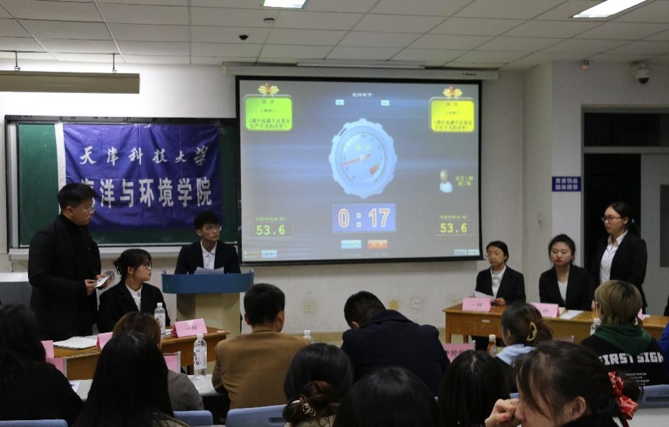 为深入贯彻落实习近平生态文明思想,广泛树立和践行“绿水青山就是金山银山”的绿色发展理念,引导学生积极传播生态环境保护知识,参与绿色生活实践,发挥青年生力军的作用,日前,学校在滨海中校区5-211举行“美丽中国 我是行动者”环保主题辩论赛决赛。本次比赛由团委、研工部、学工部主办,海环学院承办。马克思学院郑成龙老师,学工部加依那尔老师,海环学院团委书记蒋华朋老师,海环学院辅导员李婷申老师、石琛老师,校研究生会主席田梓莹同学,校学生会主席团熊红雨同学;海环学院学生会、学生科技协会的相关同学担任决赛评委。辩论赛正方是来自文法和外语学院联合组建的队伍;反方是经管学院队伍正方辩手所持的观点为“践行低碳生活重在生产方式的改变”,反方辩手所持的观点为“践行低碳生活重在生活方式的改变”。