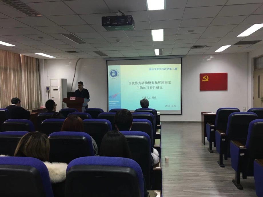 段虎博士作了题为《卤虫作为动物模型和环境指示生物的可行性研究》的学术报告。段虎老师系统介绍了卤虫重要组织和器官生理结构的特殊性,提出了卤虫免疫细胞促进卵子发生的科学假设,详细介绍了血细胞的多样性、功能及卵巢发育的特征、卵子发生的规律等研究进展,并对师生的问题进行了解答。提出了卤虫可作为研究水生物无脊椎特殊生理过程和分子机制的动物模型以及卤虫在海洋微塑料监测等领域的前景。