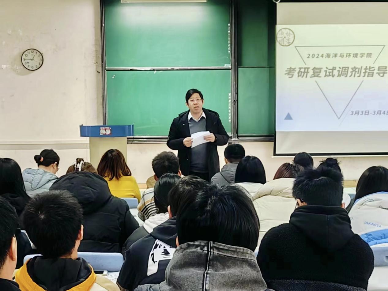 为进一步帮助海环学子掌握考研复试策略和了解调剂流程,提升复试竞争力,助力考研学子一战成“硕”,2024年3月4日,海洋与环境学院在滨海中校区9-12阶梯教室召开2024年考研复试调剂指导会,学院相关领导、各系系主任以及学院2024届考研同学出席并参加会议。