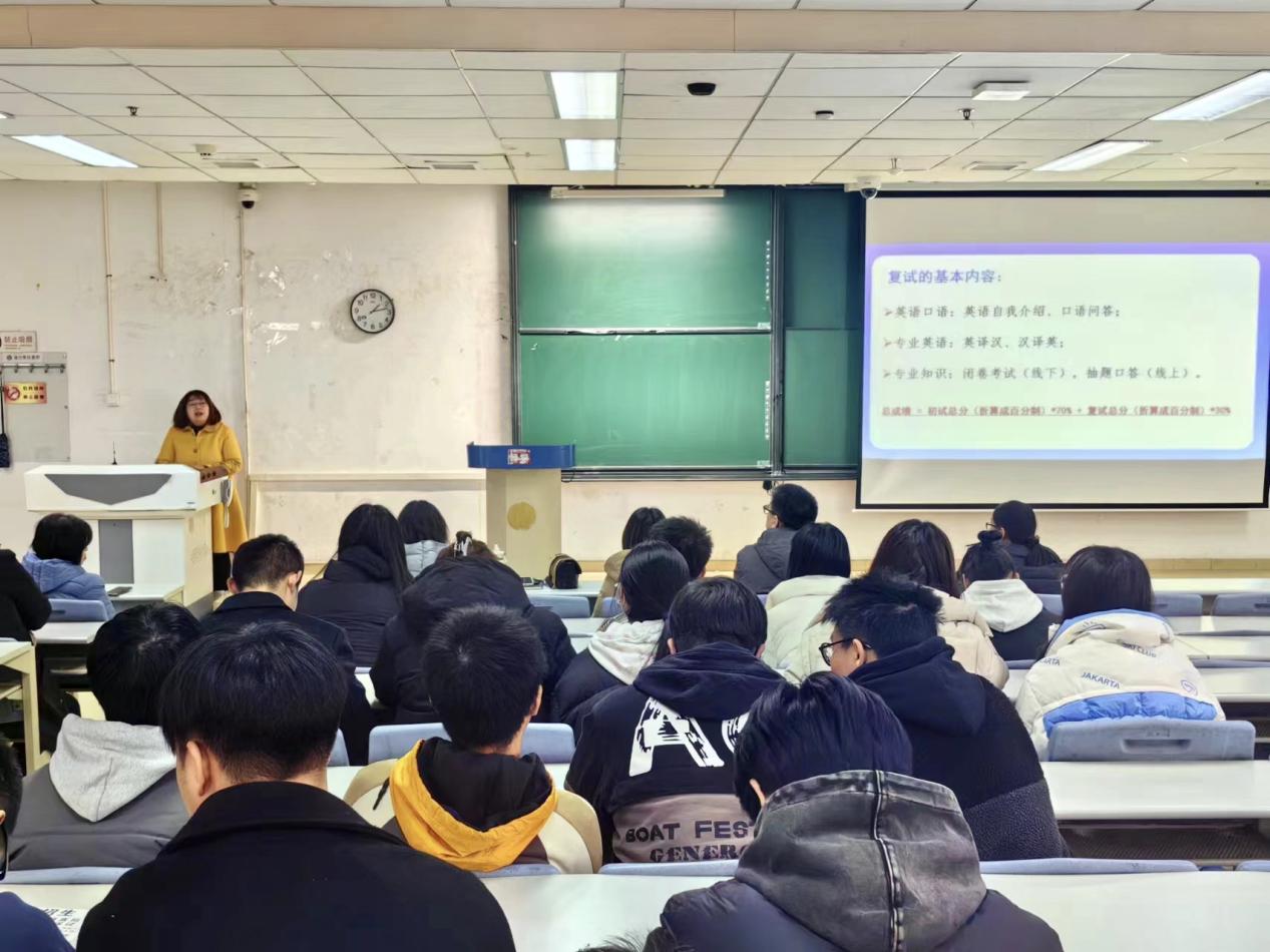 会上,李桂菊老师首先对复试和调剂的基本情况进行了详细的讲解,帮助同学们了解相关流程和要求。随后对本届考研情况进行了总结和分析,强调大家需根据自身情况积极投入复试准备工作,提醒大家不可掉以轻心,必须全力以赴、全面准备、全方位争取。