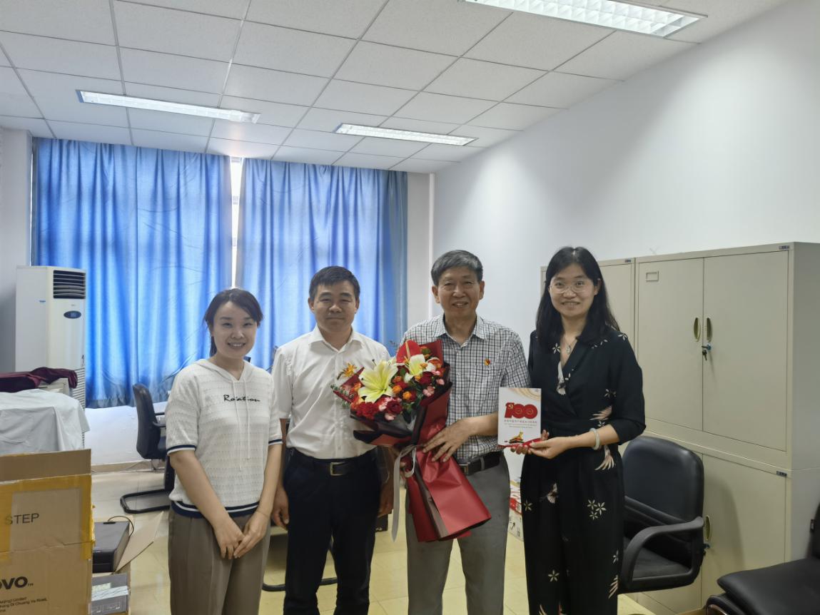 仪式结束后,杜岩刚书记看望慰问老党员刘文岭同志,并为刘老师赠送了“政治生日贺卡”和鲜花,切实把党组织的关怀和温暖送到老党员的心坎上。