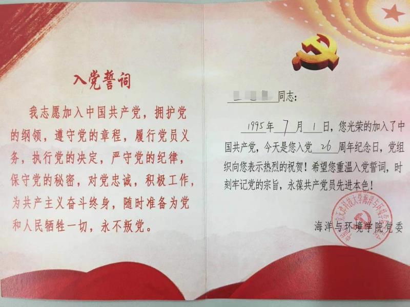 首先,全体党员面向国旗行注目礼,铿锵有力地唱响国歌,抒发自己的爱国之情。党委书记杜岩刚带领全体党员佩戴党徽,面向党旗宣誓,重温入党誓词。并为各支部的党员代表赠送了学院精心设计制作的“政治生日贺卡”。党员代表李冠男同志上台发言,交流个人入党以来的成长历程。