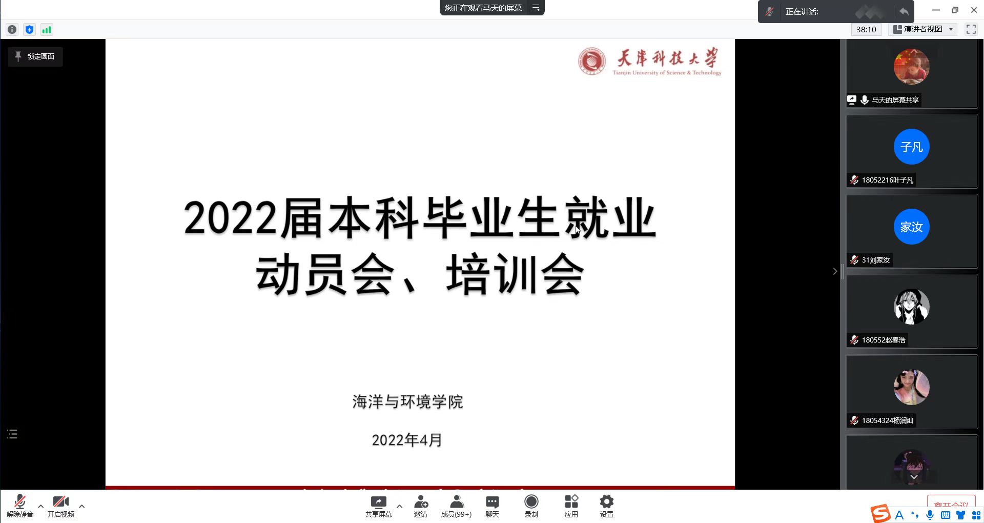 为进一步推动2022届本科毕业生就业工作,帮助毕业生清晰就业形势,明确落实就业方案的重要性和紧迫性,助力毕业生充分就业高质量就业,日前,海洋与环境学院通过腾讯会议召开2022届本科毕业生就业工作动员会暨就业方案录入指导会。毕业年级辅导员奚露老师主持会议。