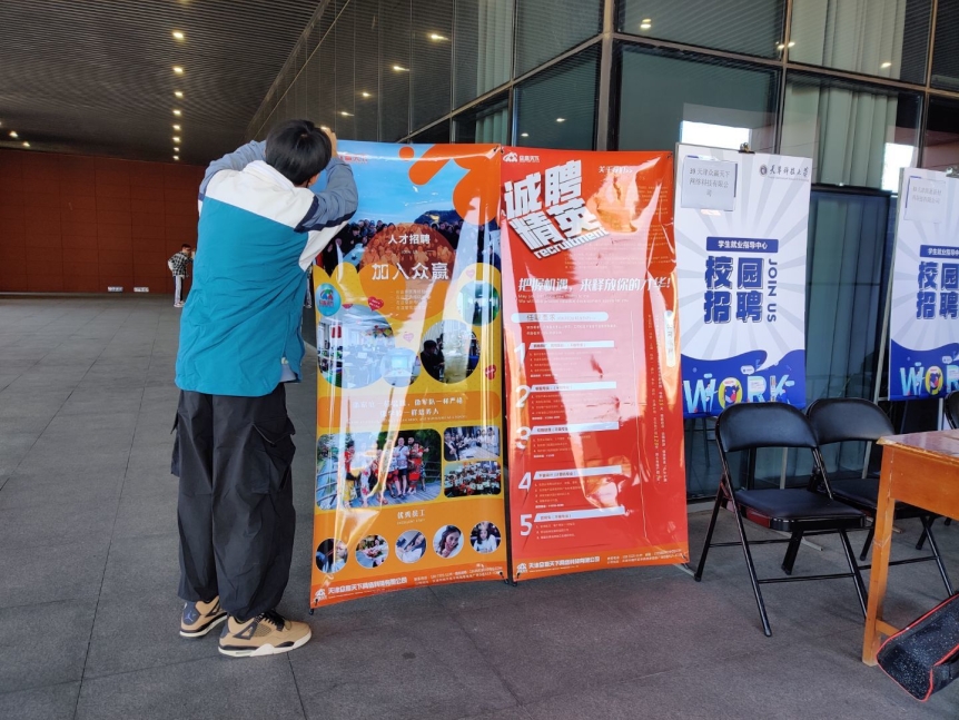 招聘会结束后,志愿者们认真负责地清理会场,协助各招聘展位收好展板,归还海报架,带走招聘会产生的垃圾,做好收尾工作。