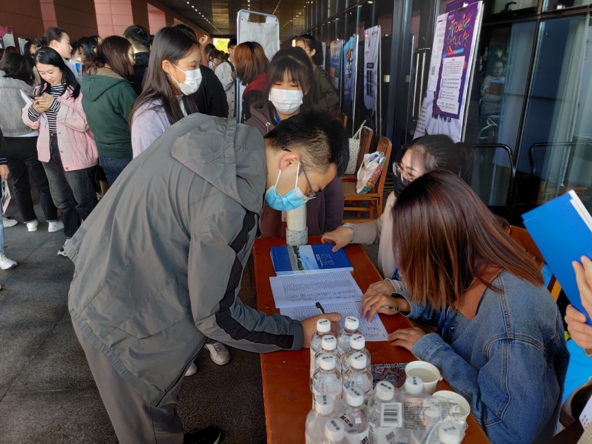 招聘会现场气氛活跃,招聘企业与应聘学生之间充分互动与交流。在招聘活动进行的同时,志愿者们积极维持会场秩序,以真诚热忱、认真负责、团结互助的工作态度,圆满完成各项工作,保障现场活动有序不紊地开展。
