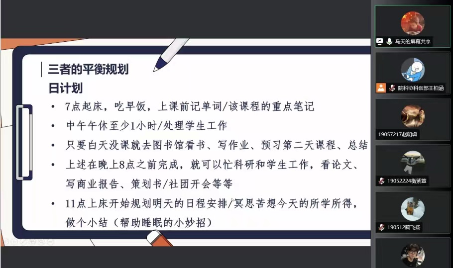 相信通过本次分享会,同学们对未来的规划会有一个更清晰的方向,会有一个更充沛的动力。让我们以梦为马,不负韶华,不辜负自己的期望。