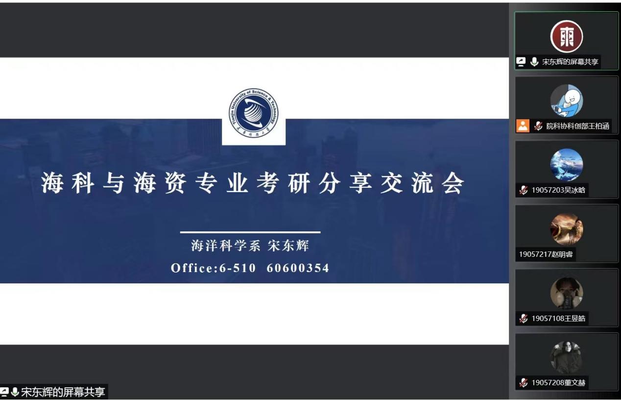 为了帮助同学们更好的做好考研规划、解决同学们在考研中存在的各种疑惑,5月20日,海洋与环境学院特别邀请了学院海洋科学系主任宋东辉老师、徐仰仓教授和已经成功上岸的学长们采用线上方式,面向学院海洋科学专业和海洋资源开发技术专业的同学举办了启航讲堂考研经验分享会第二讲。