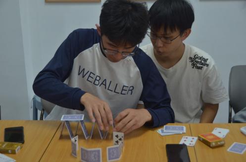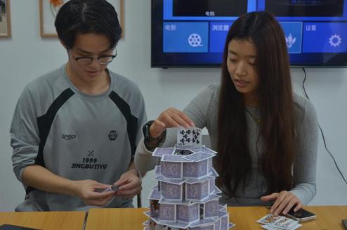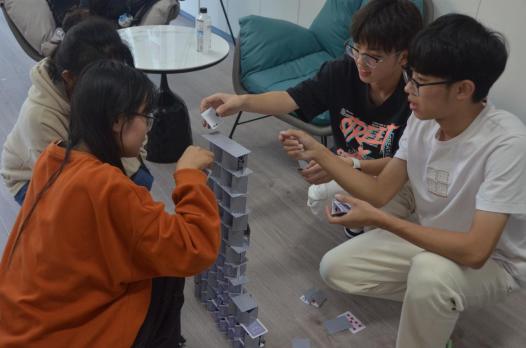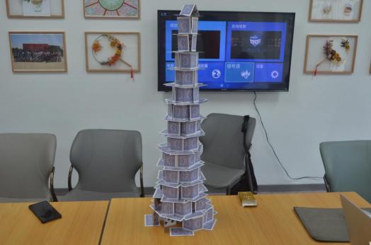 其中在叠高搭比赛游戏中,各参赛小组充分发挥动手能力与想象力,搭建出了一座座形态各异,独具匠心的纸牌塔。
