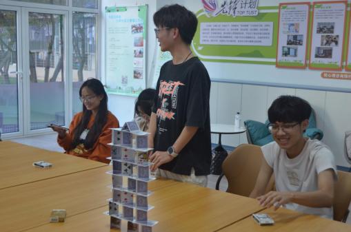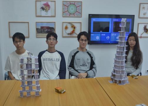经过紧张和激烈的比拼,最终环境组凭借更加出色的团队合作能力,巧妙运用有限的资源搭建了一座更高、更稳固的扑克塔,成功获得此次活动的冠军。