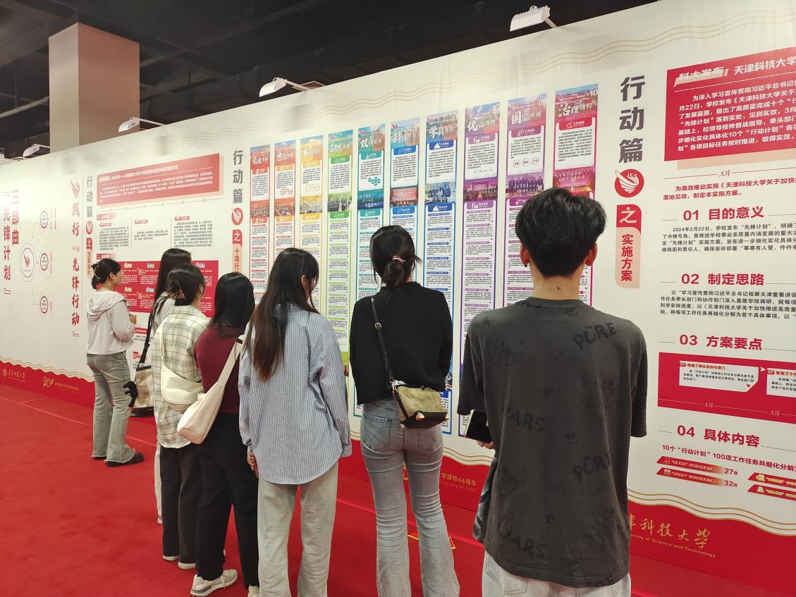 讲解员详细为学生们讲述了“携手共建篇”、“融入服务篇”、“未来展望篇”三个篇章包括“天津欧美性爱免费滨海办学20年成果展”以及“‘先锋计划’三部曲”“入驻滨海以来学校事业发展大事记”“研究生院建院十周年”三个专题展的各项内容。参观过程中,学生们深入了解了学校“坚持拓展轻工特色,精心培育行业中坚,矢志服务国计民生”的优良办学传统,发扬勇立潮头的先锋精神和艰苦奋斗的创业精神,扎根滨海、服务滨海、传薪赓火、蓄势未来的发展历程,以及学校在人才培养、科学研究、社会服务、传承创新上取得的突出成果。