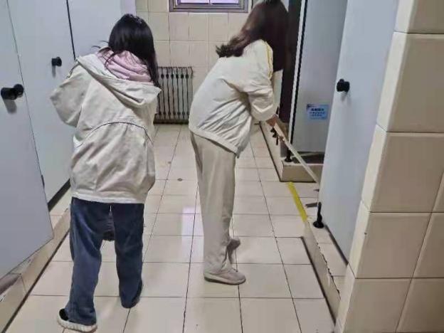 按照学工部相关工作要求,学院召开了义务劳动动员会,讲明工作要求。2021级学生认真对待义务劳动。为了把最干净的环境呈现给师生,海洋与环境学院的同学们认真打扫公厕,每一个角落都仔细认真的清理。在本次劳动中,同学们认真负责,完成自己区域的劳动后还会去帮助其他组打扫他们负责的区域,充分体现出同学们之间的互帮互助、团结友爱的情谊。