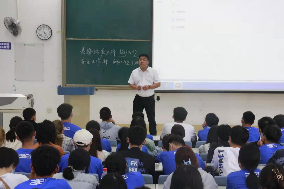为加强新生法治教育,进一步引导新生树立学法、懂法、守法、护法的法治观念和法治意识,增强新生防诈骗安全意识和自我保护能力,9月6日下午,海洋与环境学院在滨海中校区9号楼7阶教室举办了“安全与法治教育”专题讲座。讲座由学校党委安全工作部崔浩老师主讲,2021级全体新生参加。