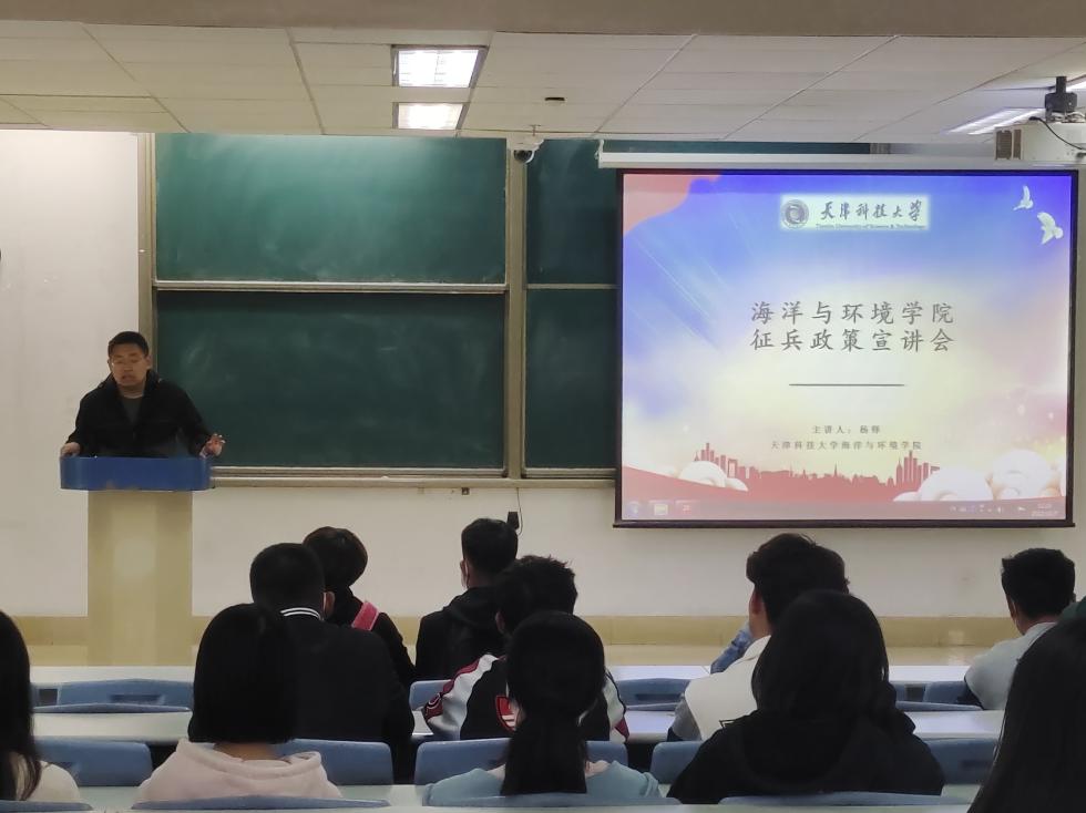 为积极响应国家大学生应征入伍号召,深入宣传征兵政策,激发大学生参军入伍积极性,10月7日,海洋与环境学院在滨海中校区9号楼6阶梯教室成功召开了征兵政策宣讲会。宣讲会邀请武装部杨铎老师面向学院有应征入伍意愿的学生进行了征兵政策解读。