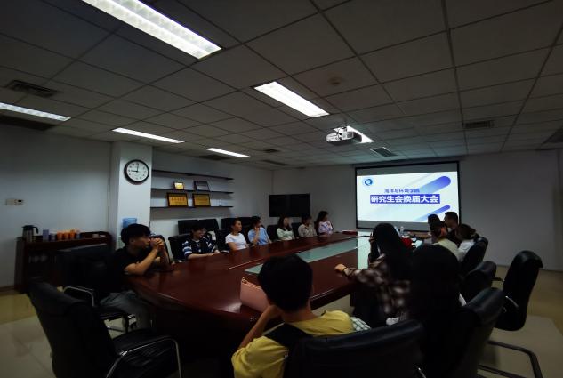 7月3日,海洋与环境学院在滨海中校区9号楼512举行研究生会换届大会。大会由新一任副主席王丹阳主持,研究生辅导员李婷申老师、2020届和2021届研会成员参加了本次大会。