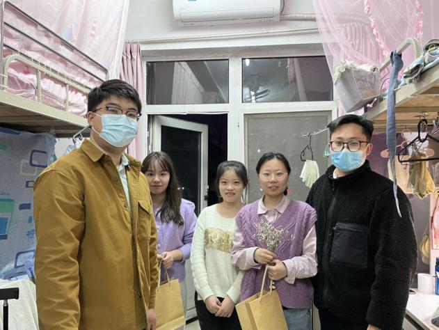 学院学生工作干部“潜入”学生宿舍逐一为考研复试备考中的同学发放“金榜题名福袋”,福袋里面有“祝福贺卡、橙子、花生、满天星”等暖心礼品,深深代表了学院对海环学子的关心关爱、殷切期望与美好祝福。学生工作干部在学生宿舍与考研同学进行了暖心交流,传达了暖心祝福:祝考研学子心想事“橙”、好事“发”(花)生、一战“橙”硕。