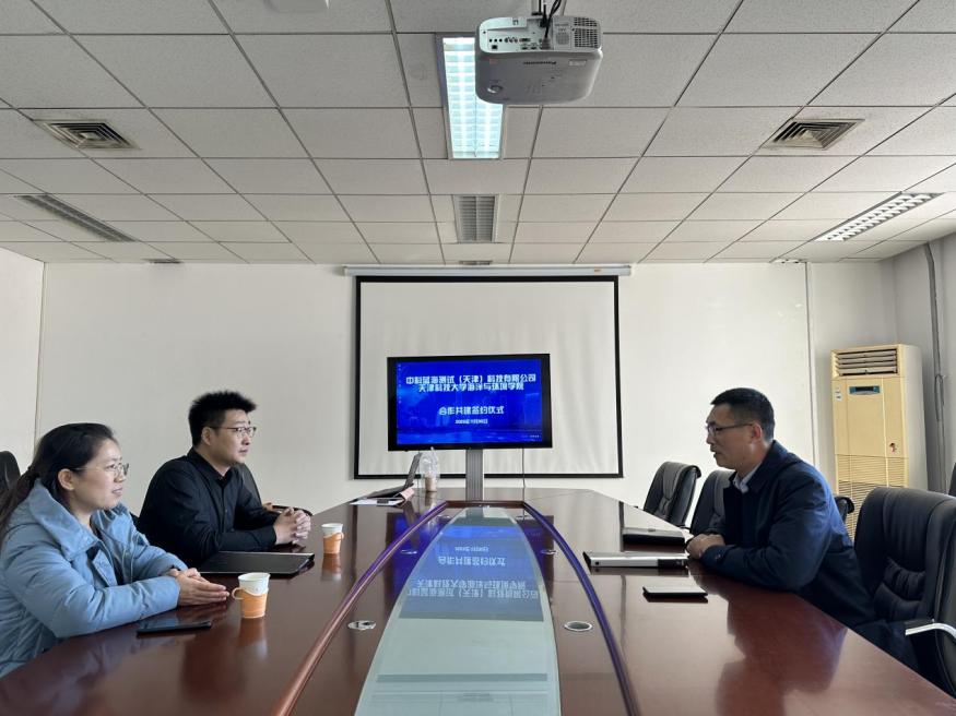 海洋与环境学院党委书记许涛和中科蓝海测试(天津)科技有限公司孙永泽共同签署了实践育人基地共建协议。校企双方代表共同拟定了需求清单、资源清单和项目清单,就后续合作共建事宜进行了深入的探讨和交流。