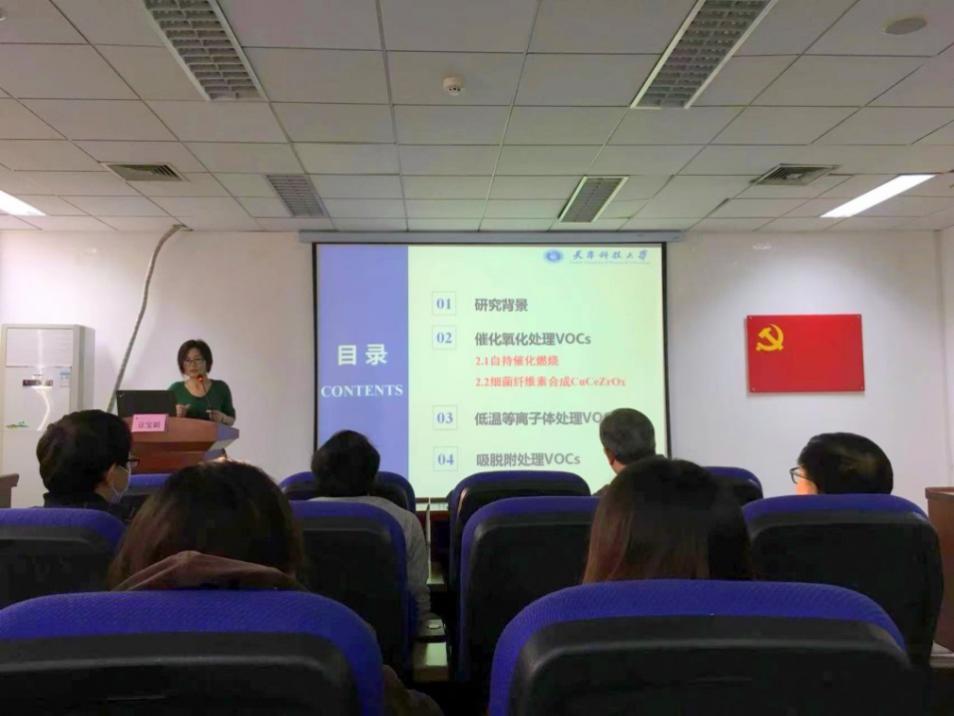 豆宝娟博士报告的题目是“挥发性有机化合物(VOCs)的末端控制技术”,结合“十四五”和“一厂一策”VOCs治理现状,指出双碳目标下多过程耦合处理VOCs的必要性。从催化氧化、低温等离子体、吸脱附处理VOCs等方面具体阐述,重点介绍了VOCs自持催化燃烧过程和非贵金催化剂研发。豆老师也分享了出国访学期间从事的工作和感想,提出了下一步研究工作的设想。