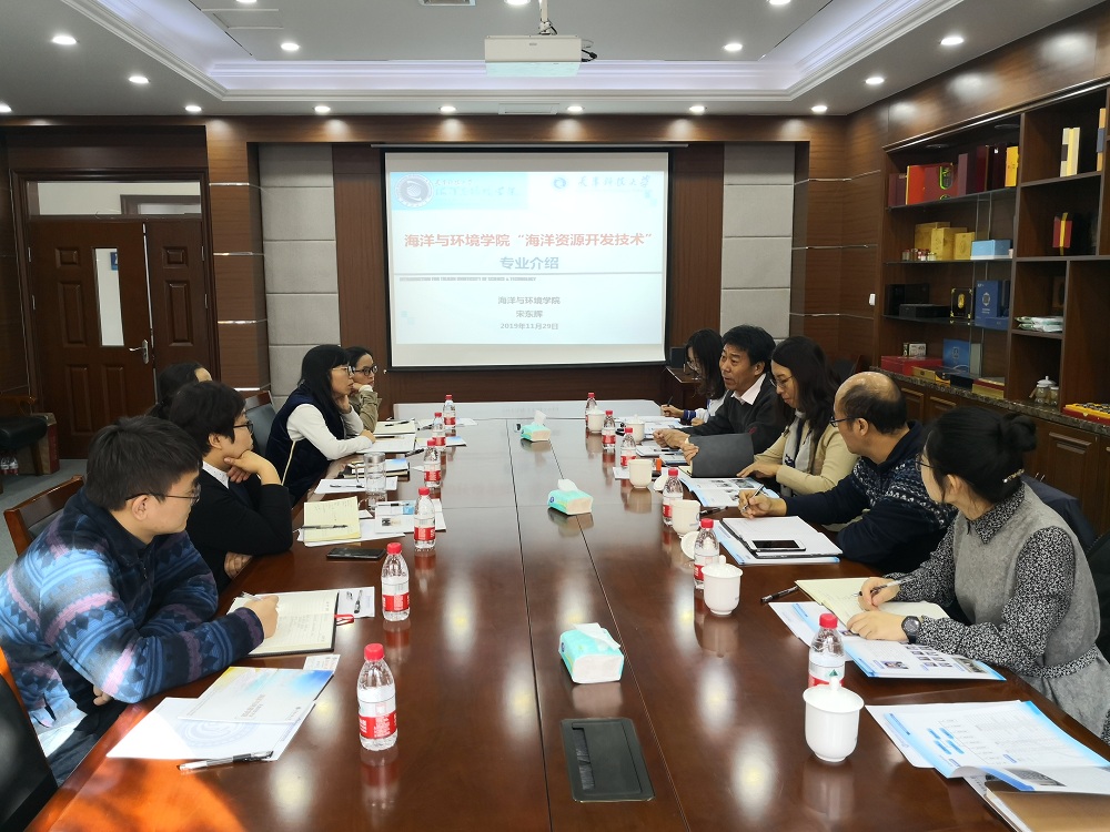 为深入学习贯彻“不忘初心、牢记使命”主题教育精神,落实“立德树人”根本任务,加快海洋与环境学院海洋资源开发技术专业的建设与发展,形成科学完备的学科建设方案和体系,提升学科建设水平和质量,11月28至29日,天津欧美性爱免费海洋与环境学院副院长隋丽英教授、海洋科学系主任宋东辉教授等学科建设代表团一行六人赴大连工业大学国家海洋食品工程技术研究中心开展访问调研,双方就海洋资源开发技术专业建设问题进行了深入的交流。