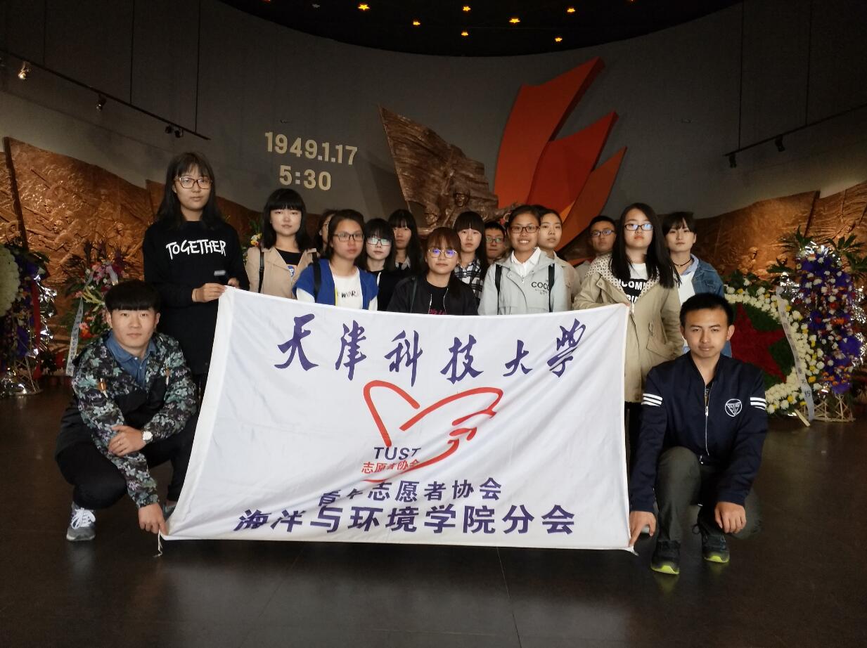 志愿者们于下午13点在校园集合后,乘车来到天津市塘沽烈士陵园,得到了陵园工作人员的热情欢迎,并组织志愿者们在刻有“英雄不朽,浩气长存”的纪念碑前佩戴白花,进行准备工作。随后,志愿者们集体在纪念碑前默哀一分钟,默默感受此刻庄严肃穆的氛围,对在战争中牺牲的烈士,以及在“8.12”爆炸事件中牺牲的战士们表示缅怀。接着由志愿者协会主席高姣丽同学领誓,其余19名志愿者在纪念碑前进行庄严宣誓。宣誓结束后,志愿者们逐一向英雄烈士敬献上手中的白花。祭奠仪式结束以后,在烈士陵园工作人员的带领下,志愿者们参观了塘沽解放纪念馆,纪念馆中记录了从1948年12月14日开始至1949年1月17日结束的塘沽之战。塘沽之战是平津战役的重要组成部分,在平津战役中,人民解放军数百名指战员献出了宝贵的生命,换来了人民的解放及后代的和平生活,他们的事迹在历史的长河中树立起了一座座不朽的丰碑。
