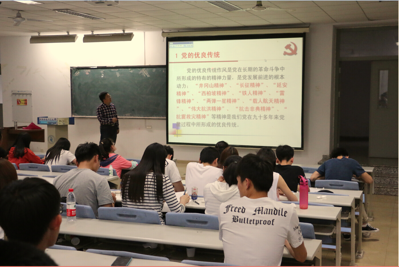刘教授以《发扬党的优良传统和加强党的作风建设》为主题,围绕“党的优良传统”、“党的优良作风”、“大学生优良品质的养成”等三个方面进行了精彩的解读。在“党的优良传统”模块,刘教授分别对“井冈山精神”、“长征精神”、“延安精神”、“西柏坡精神”在内的老一辈共产党员的革命精神以及包括“铁人精神”、“两弹一星精神”、“九八抗洪精神”、“抗击非典精神”、“抗洪救灾精神”在内的新一代共产党员在改革开放时代的民族精神的内容分别做了详细介绍。在“党的优良作风”模块,刘教授分别从党的优良作风的基本内容—“理论联系实际的作风”、“密切联系群众的作风”、“批评与自我批评的作风”、“艰苦奋斗的作风”的四个方面以及八大优良作风的内容对党的优良作风进行深刻解读。