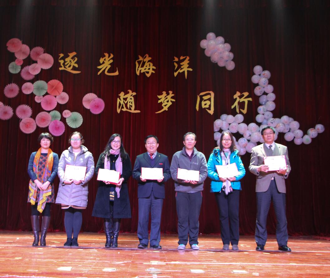 2016年转瞬即逝,为迎接新年的到来,12月21日晚,“逐光海洋,随梦同行”海洋与环境学院新年师生同乐会暨年终表彰大会在滨海校区西苑千人礼堂隆重举行,海洋学院党委书记张春艳副教授、院长孙军教授、副院长王昶教授、刘宪斌教授、隋丽英教授、党委副书记金峰老师亲临现场,学院各系、各办公室的老师们也出席了本次晚会,与同学们共迎新年。