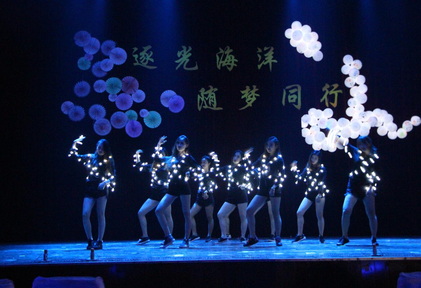 本次晚会以“光”为主题,共分为五个章节,分别以海洋“OCEAN”的五个字母“O、C、E、A、N”构成。第一章“Oh"在极富动感的开场舞中拉开帷幕,姑娘们炫目的服装在黑暗中闪烁,如同光的海洋,瞬间引爆全场。随后,院长孙军教授上台致辞,他与在场师生共同回顾了2016年海洋学院的发展与变化,对师生们一年来的努力表示由衷地感谢,同时也代表学院领导班子对大家致以亲切的问候,并在新年来临之际送上深深地祝福。