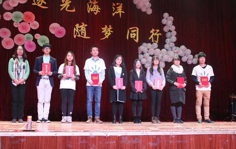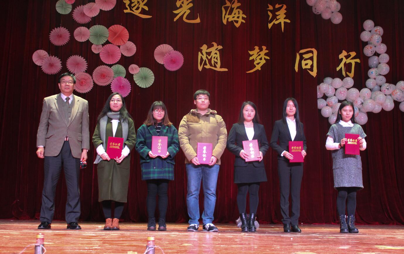 2016年是海洋学院硕果累累的一年,学院师生多个个人、集体分别获得国家级、市级、校级优秀个人和集体奖项。为表彰一年来在各自领域中作出突出贡献的老师及表现优异的学生,晚会中穿插进行了优秀教师、优秀学生团队及优秀学生个人的表彰颁奖,优秀个人代表梁雪娇及先进集体代表140511班姜铭心分别上台发言,并与大家分享了他们的成果及经验。