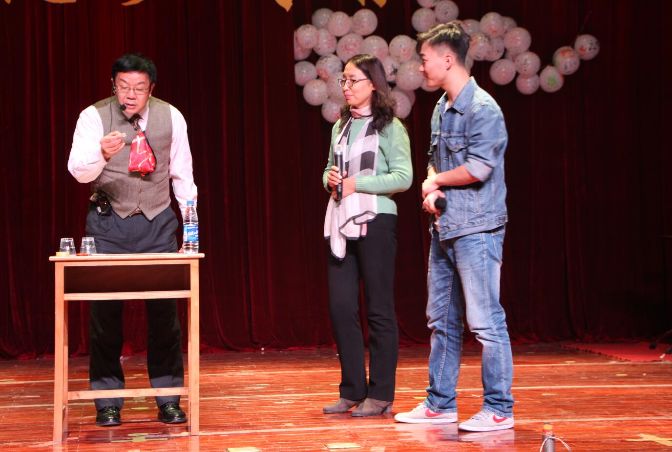 第三章的主题是闪电“Electric”,副院长王昶教授的魔术表演把大家带向了奇妙的世界,台上台下互动气氛热烈。接着,校园十大歌手之一杨丰帆一展歌喉,深情献唱 《outlaws of love》和《告白气球》两首情歌,把现场观众带回甜蜜美好的回忆。班歌比赛冠军160552班的同学们用他们嘹亮的歌声唱出了《最初的信仰》,向大家展示了他们团结向上的班风班貌。而党委副书记金峰老师和来自理学院的魏吉兆老师带来的相声《新八扇屏》更是把晚会推向了高潮,场内笑声、叫好声不断。