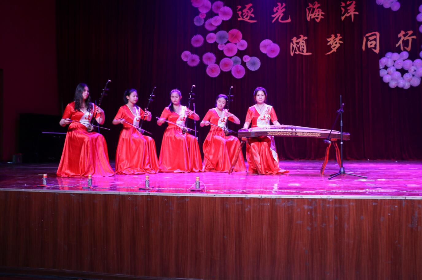 第二章的主题是“Calm”,寓意着海洋人心静如水,仍将勇往直前。校民乐团以一曲《战马奔腾》迅速点燃了观众的激情,大一新生反串版《白蛇前传》则让我们感受到了小鲜肉们的活力与精彩,蒲琳和贺琳两位同学演唱的《温柔》和《牵丝戏》诉说了别样的温情,而学院领导班子的配乐诗朗诵《长征颂》及老师们的小合唱《红旗飘飘》,更是令现场掌声此起彼伏。
