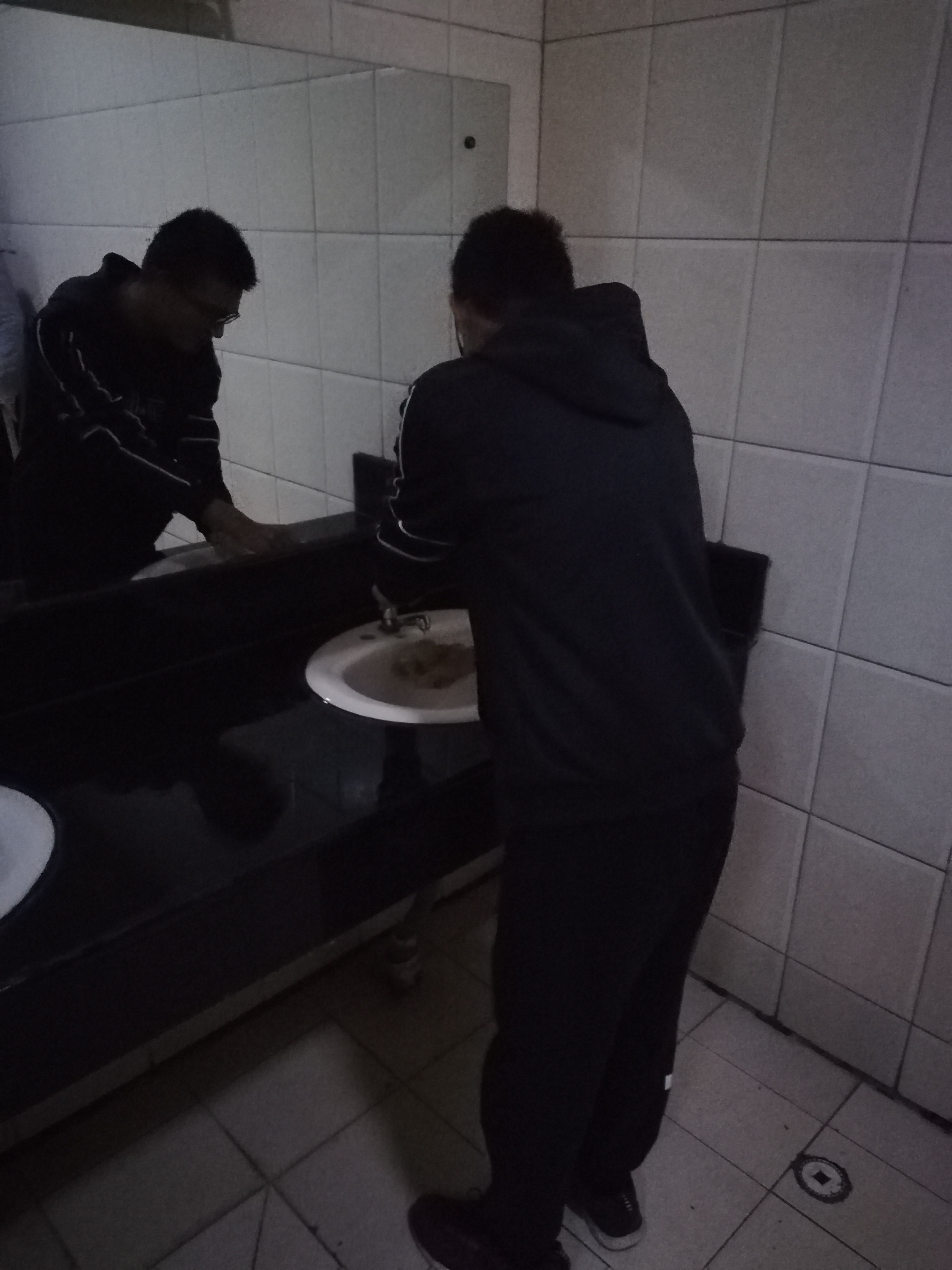虽已进入冬季,但同学们坚持着清扫标准毫不松懈,努力在细节上做得更好。第一天为学校做义务劳动,180544班周世皓同学很快就进入勤恳的工作状态,认真的擦地打扫水台水池,使地砖变得干净整洁,水池也变得一尘不染。不知擦了多少遍洗手台、拖过多少回地板,手中的抹布和拖把在一个个班里传下去,经过一个个人的手,传承着科大“尚德尚学尚行,爱国爱校爱人”的精神,同学们用自己的实际行动体现了海环人的精神风貌和意志品质。