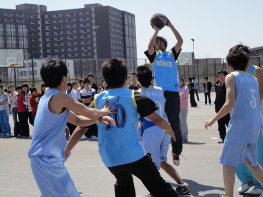 连突带投,进攻提速,屡投屡进。激烈紧张的比赛紧紧地吸引着在场的观众和啦啦队,不时地发出喝彩和掌声。下半场易边再战,比赛进入白热化,分数一直对峙到最后。这是一场针锋相对的比赛,在进行了40分钟的激烈争夺后,最终海洋学院以38比41,三分惜败经管学院,取得了亚军的成绩。