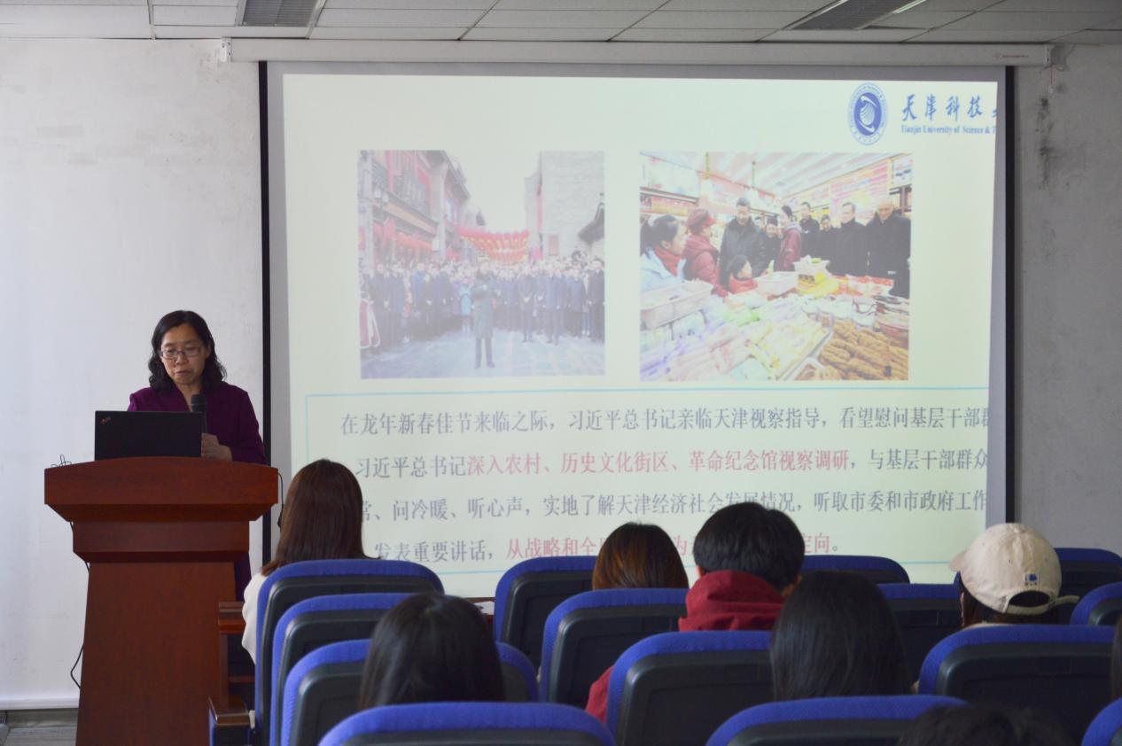 赵老师指出,习近平总书记站在以中国式现代化全面推进强国建设、民族复兴伟业的全局高度,站在深入推进京津冀协同发展的战略高度,对新征程上天津工作提出总体要求和“四个善作善成”的重要要求。善作善成,最终看的是落地见效,赵老师号召全体师生党员务必要牢记嘱托,实干奋进,从实际出发谋划各项工作,把问题挑战作为突破点,不断用新理念新思路新办法解决新问题,道路必将越走越宽广,天津建设必将越来越美好。