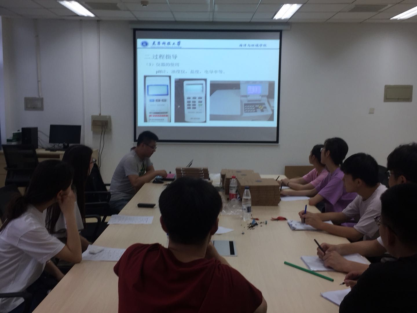 最后,研究生王睿涵带领大家在实验室一起学习了环境监测中盐度、营养盐含量、溶解氧等常规指标的相关实验知识和仪器操作,为后期大家在海上采样、监测等提供帮助。后期海洋与环境学院将继续开展“新时代,实践行”相关活动,为学生搭建良好的科研、实践平台,充分发挥学生的主观能动性,将科研工作与社会实践相结合,为新时代生态文明建设贡献自己的力量。