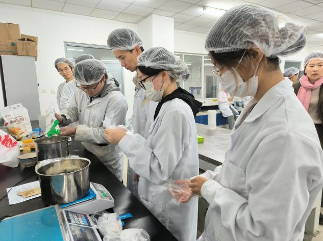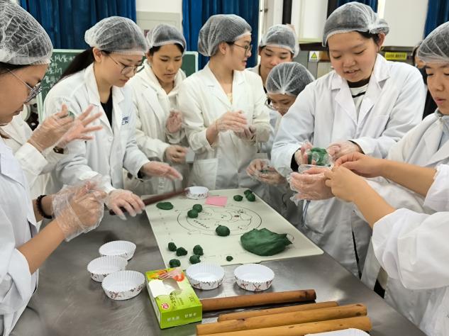 实践环节中,学生们以劳动小组的形式进行活动。从称量、搅拌到面团塑形,最后烘焙成面包,学生们认真合作,全程参与,亲手完成了“螺旋藻益生菌面包”的制作。过程中,老师和实验室技术人员实时进行指导和支持,确保每位学生在劳动过程中掌握关键技能。