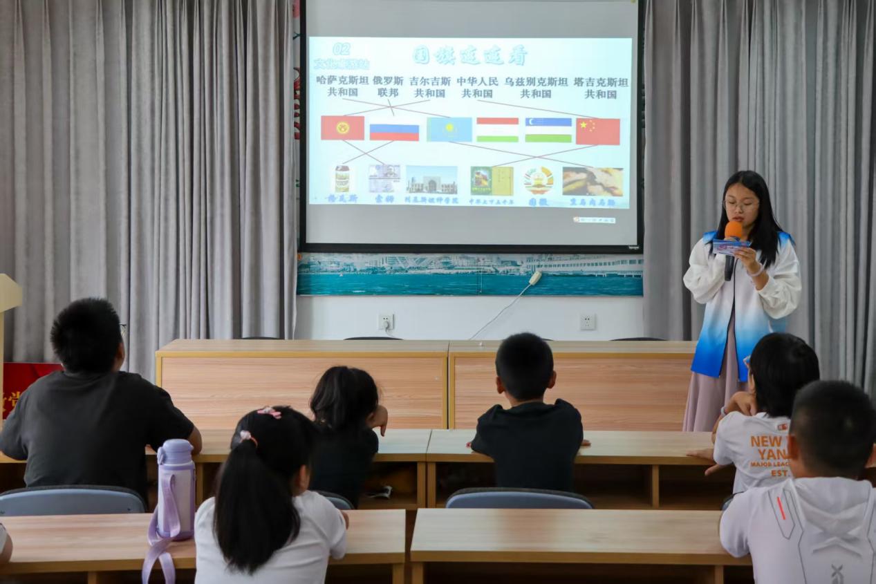 活动中,实践团成员为到场青少年,介绍了上海合作组织的基本情况、主要成员国的组成以及第一届上合峰会的开展情况;同时,为大家介绍今年的上合组织峰会将在天津举行,二十多个国家的领导人和10个国际组织的负责人将齐聚海河之滨,这也将是上合组织成立以来规模最大的一届峰会。