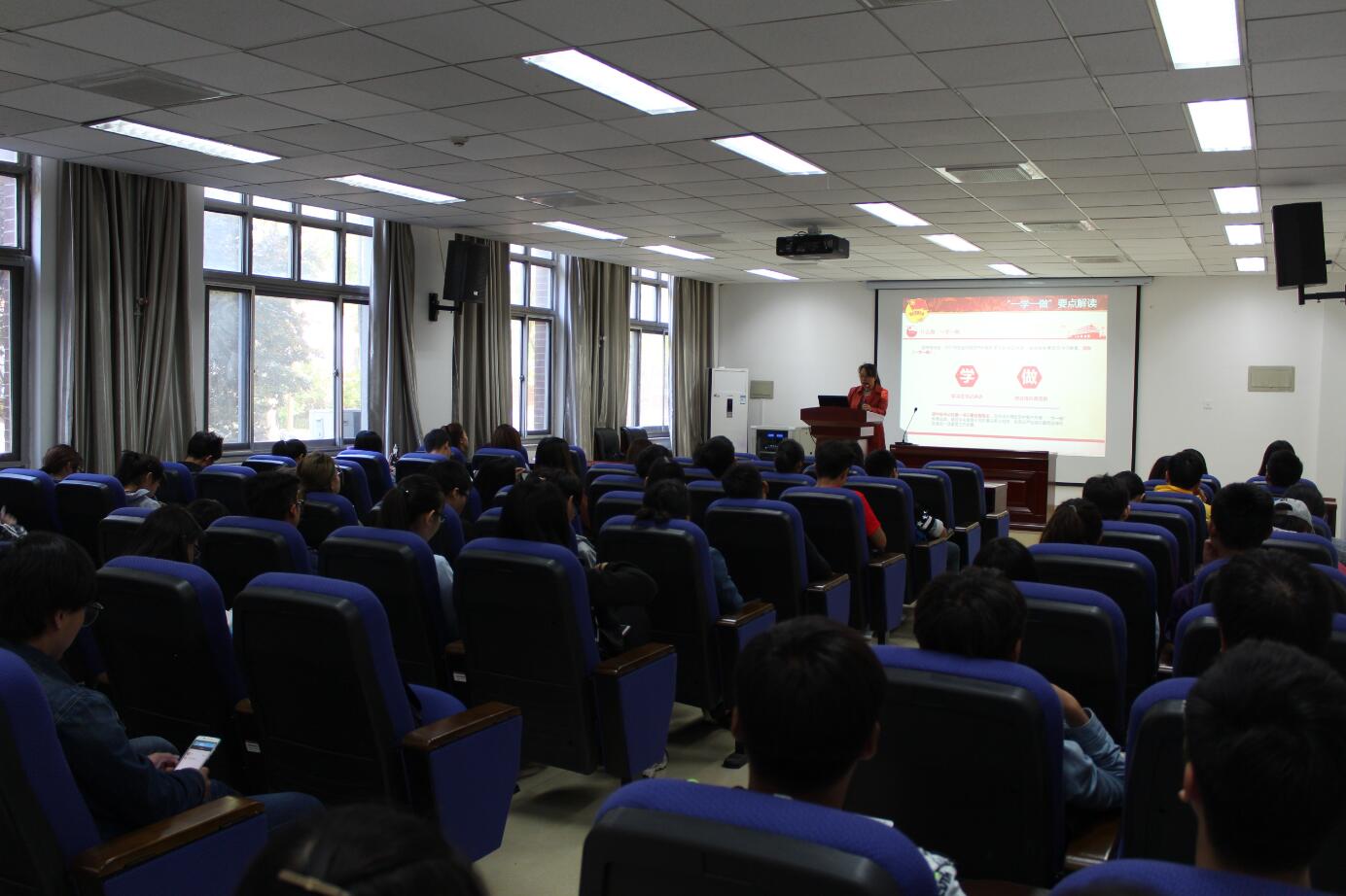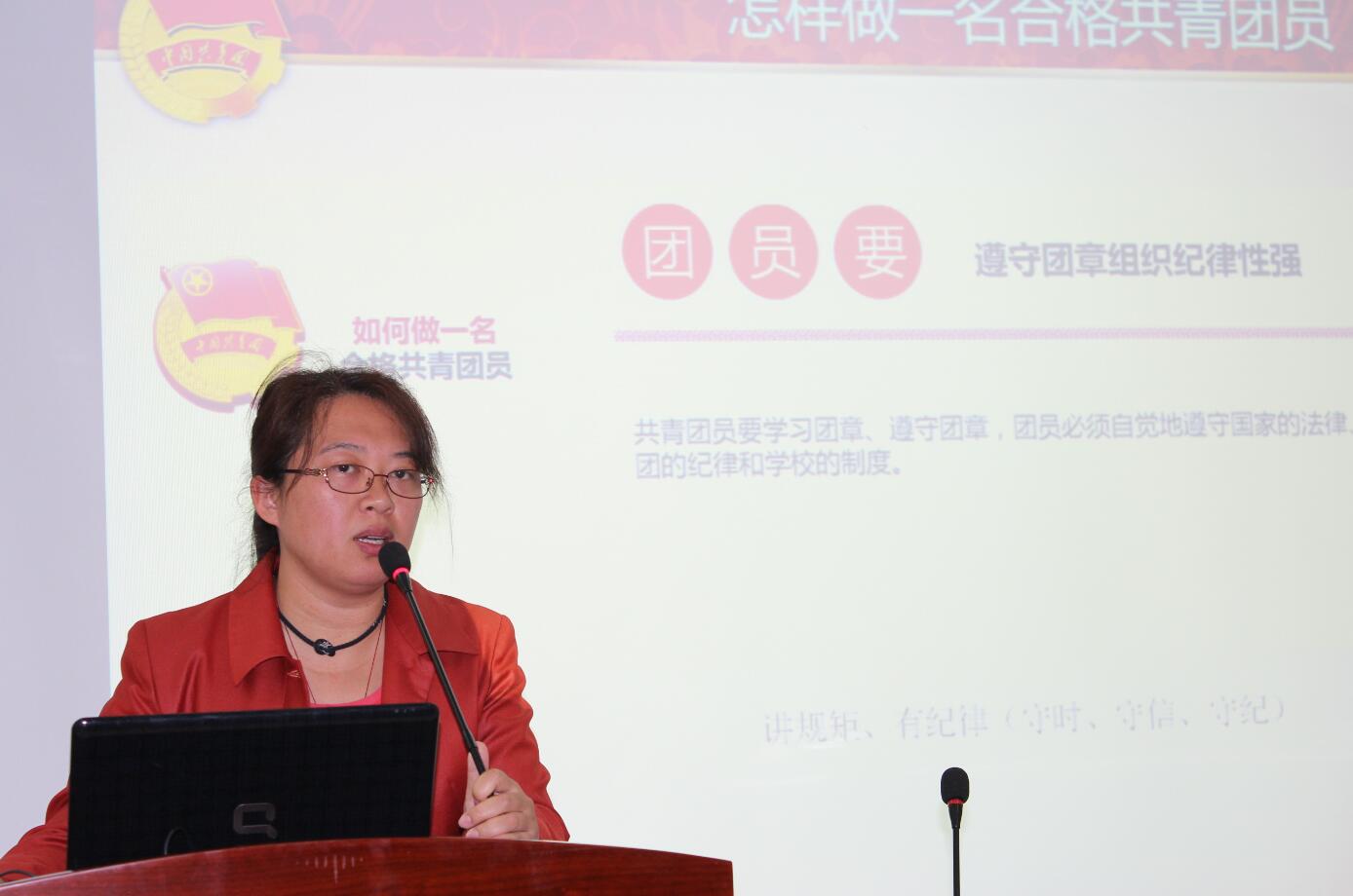 本次团课主题为“怎样做一名合格团员”。团课伊始,田老师首先对“一学一做”相关要点进行了详细解读。她从“一学一做”的主要内容、背景时间、教育对象、目标任务、重要意义等方面,结合相关文件逐一向大家进行说明。随后,她结合案例向团员们生动讲解应该如何做一名合格的共青团员,并提出应当从四个方面着手,即要遵守团章,加强纪律性;要坚定信念,加强学习;要严格要求,养成良好习惯;要把握全局,落实实践。最后,田老师带领全体参会团员共同重温了入团誓词,她希望学院各团支部和全体团员,在接下来的学习中,能认真落实开展“一学一做”学习教育实践活动,认真践行社会主义核心价值观,进一步强化团员的光荣感和使命感,牢记“四个意识”,坚持“四个自信”,在学习工作生活中充分体现团组织和团员的模范带头作用,彰显团员队伍的先进性,做一名合格的共青团员。