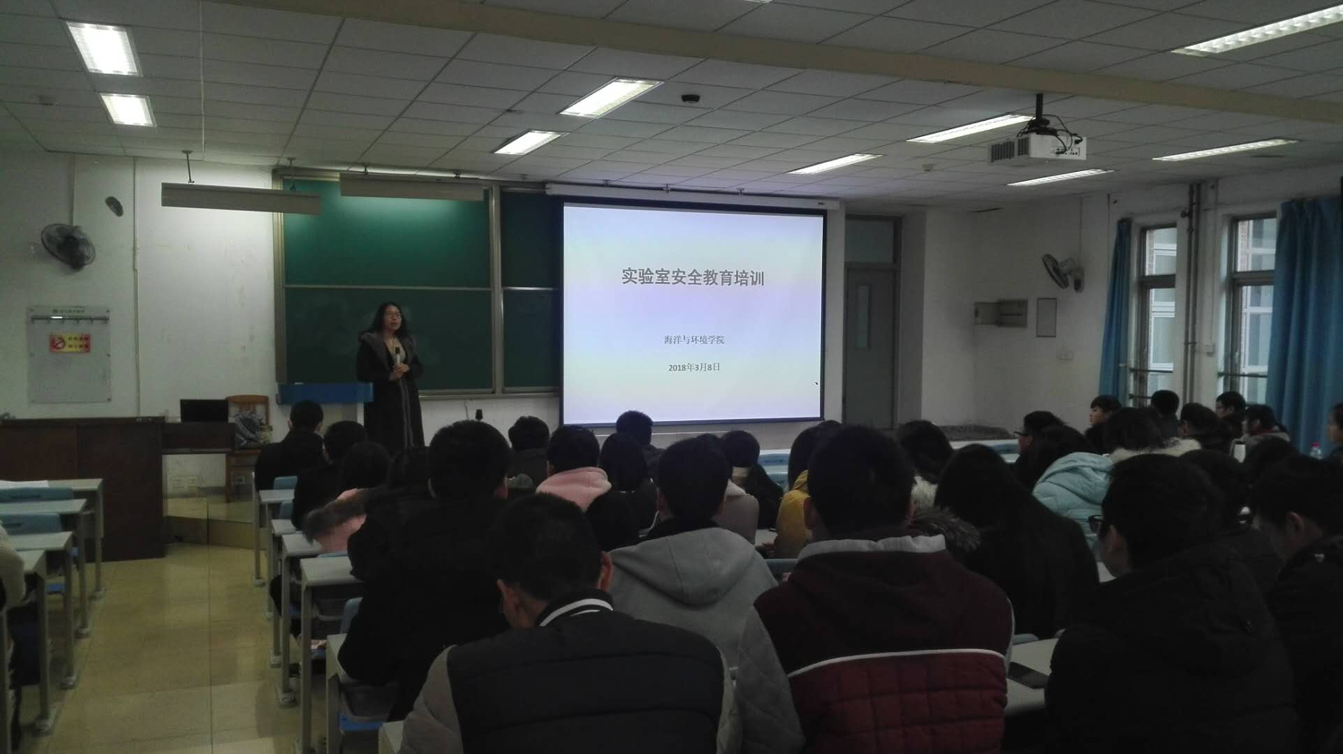 2018年3月8日,海洋与环境学院举行了实验室安全培训讲座。本次培训主要针对全体研究生和即将进入实验室做毕业设计(论文)的本科毕业生。举办培训讲座旨在强化学生实验室安全意识,督促学生养成自律的实验室安全习惯,深化学院实验室准入制工作,促进实验室安全工作长效机制建设。