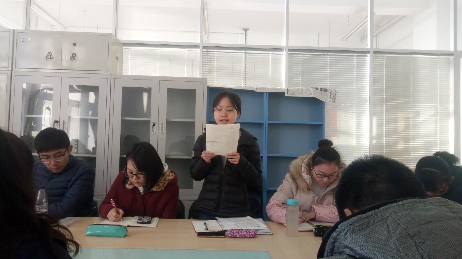 12月5日下午,环境科学本科生党支部在泰达中校区4号楼201室召开了支部党员发展、转正大会,会议由组织委员任娜主持,支部全体党员参加了此次会议。