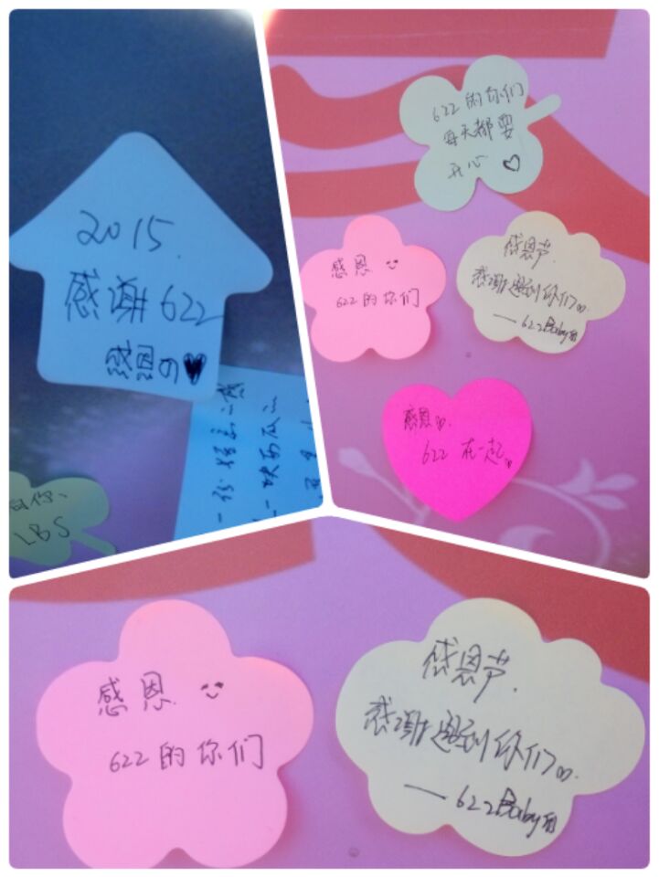 活动期间,有的班级召开了感恩主题班会,让每位同学都有机会表达对家人、朋友、社会的感恩;有的班级以宿舍为单位开展感恩活动,通过制作视频向身边的亲人友人表达关爱与感谢;有的通过电话、微信、QQ等各种方式,向父母说“我爱你”,表达感恩;有的则通过校园随访,写感恩话语,制作便利贴感恩墙等形式开展主题教育活动。一个男生在接到爸爸的电话后深有感触地说:“自从上大学后,我很少主动给家里打电话,更没和他们说过‘我爱你’,这次班里制作了每个人的感恩视频,并发到了网上,爸爸看到后很感动,以后我真得应该多给他们打打电话,告诉他们我想你了。”