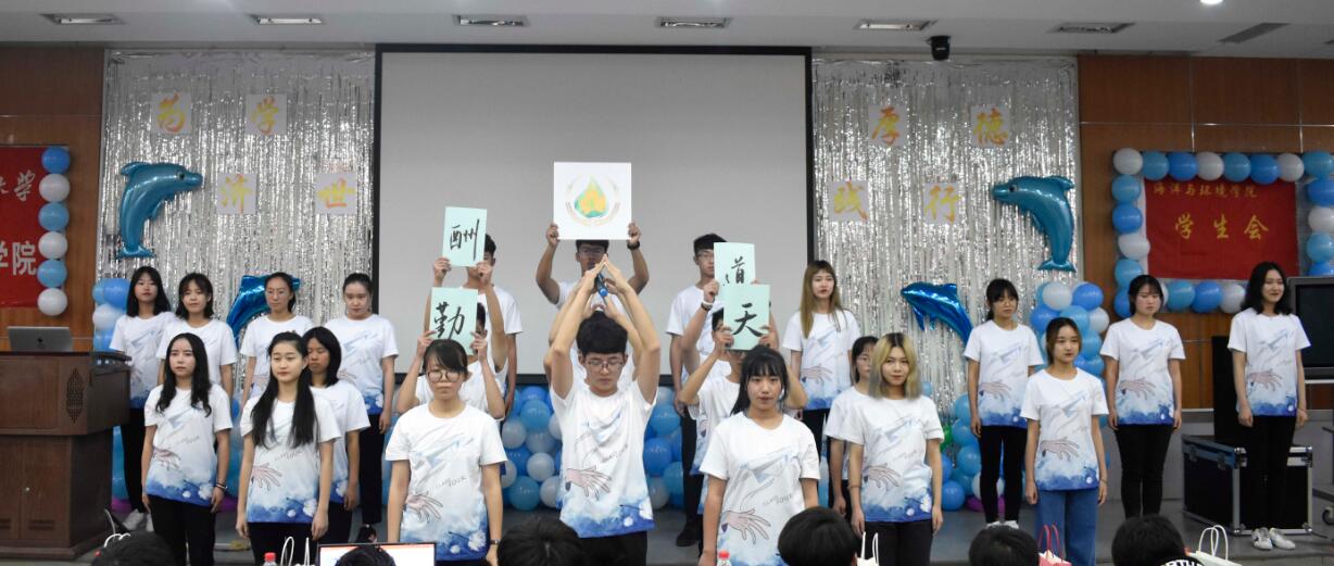 比赛开始,各班主讲人逐一上台介绍本班的班徽、班规、班训,随后各班依次为我们带来了独具特色的班歌表演。