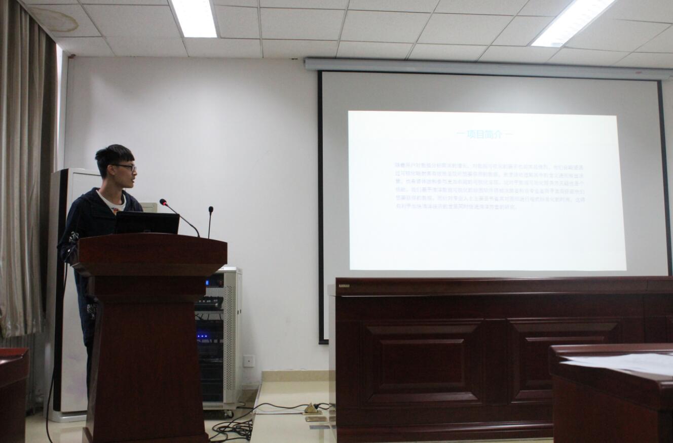 共20个团队参加本次科技作品竞赛,出场顺序由项目负责人赛前随机抽签决定。主讲人依次上台,以项目介绍为切入点,分别从申请理由,项目方案、预期成果,经费预算等五个方面进行限时五分钟的发言,向评委老师介绍了项目背景、主要内容、现阶段进程及团队分工等。发言结束后,团队主讲人与评委团进行了精彩的答辩,评委老师们指出项目不足并提出整改建议,帮助学生团队提高项目完善度。